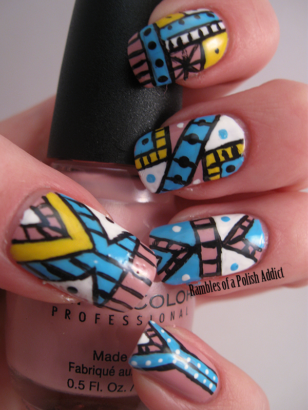 For this look I started with a base color of Sinful Colors Starfish and then used black acrylic paint to outline and sketch out where I wanted the design to go. These are all inspired by various looks I've seen around as I googled to try to figure out what I was doing for the theme, and I just took inspiration from my favorites that I seen on the image search.